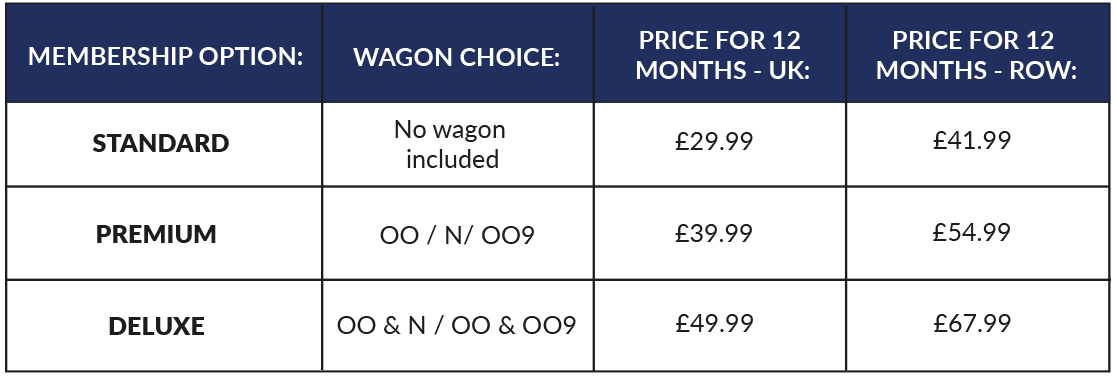 For those collectors and modelers who want to add a second club membership wagon to your collection, our Deluxe Membership offers great value. Now costing just £49.99 and gives you the choice of having two wagons in two scales. You can choose between a OO and a N Scale wagon option, or a OO and a OO9 Scale wagon option, plus you get all the other great benefits of our Standard Membership with either option.