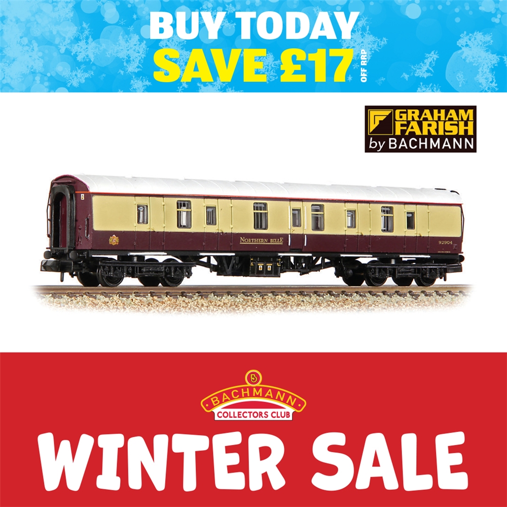 Announced in November 2022 to coincide with Bachmann Europe’s Winter 2022 British Railway Announcements, we are delighted to present this Limited Edition N scale BR Mk1 BG No. 92904 in the attractive Northern Belle Maroon and Cream colour scheme. Based on the Graham Farish N scale Mk1 BG, our model is highly detailed and carries a wonderful rendition of this colourful livery. Fitted with B4 bogies, the model includes NEM coupling pockets mounted on a close coupling mechanism.