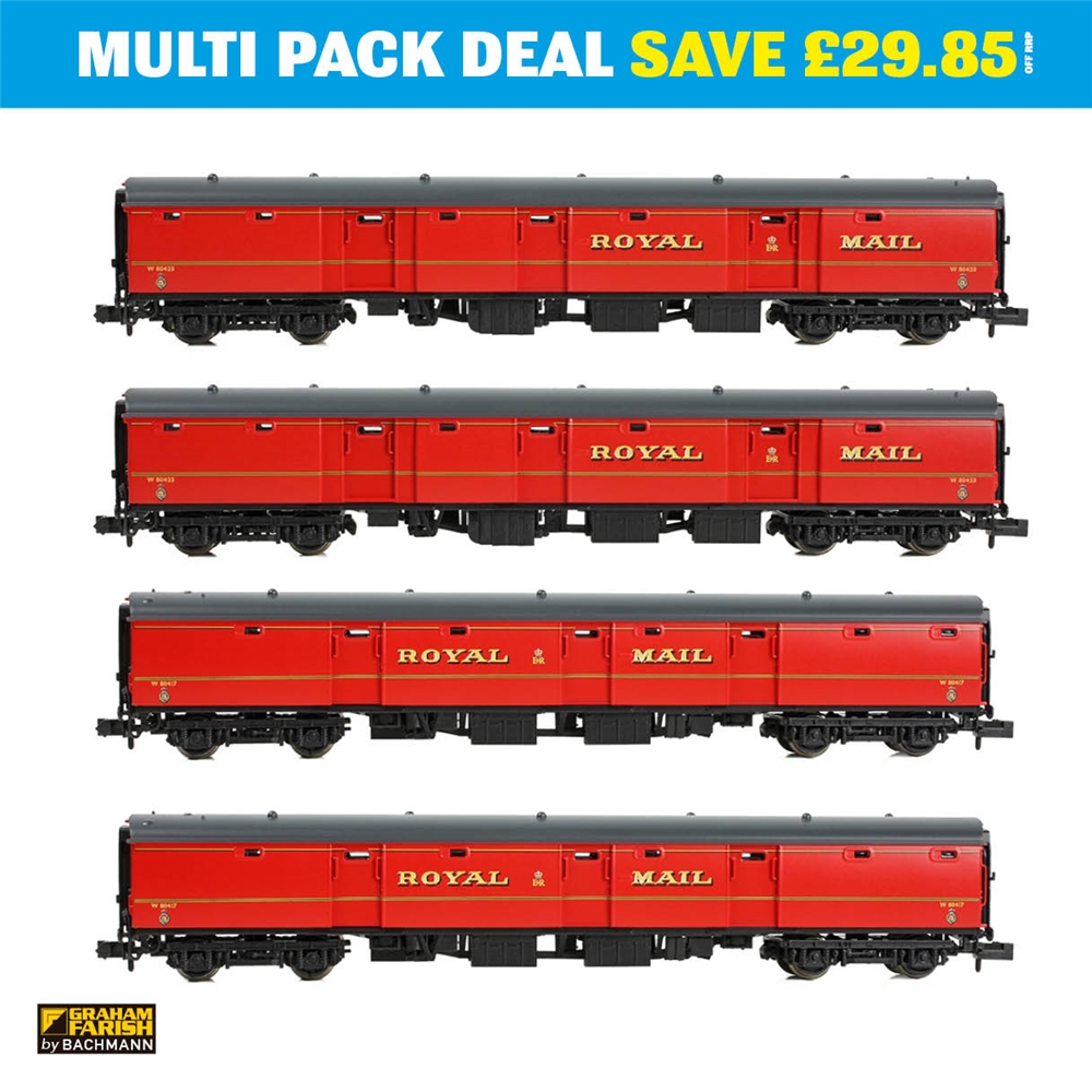 We are delighted to present this special value pack of four N Scale BR Mk1 POT Post Office Tender (Stowage) coaches in original Post Office Red livery.