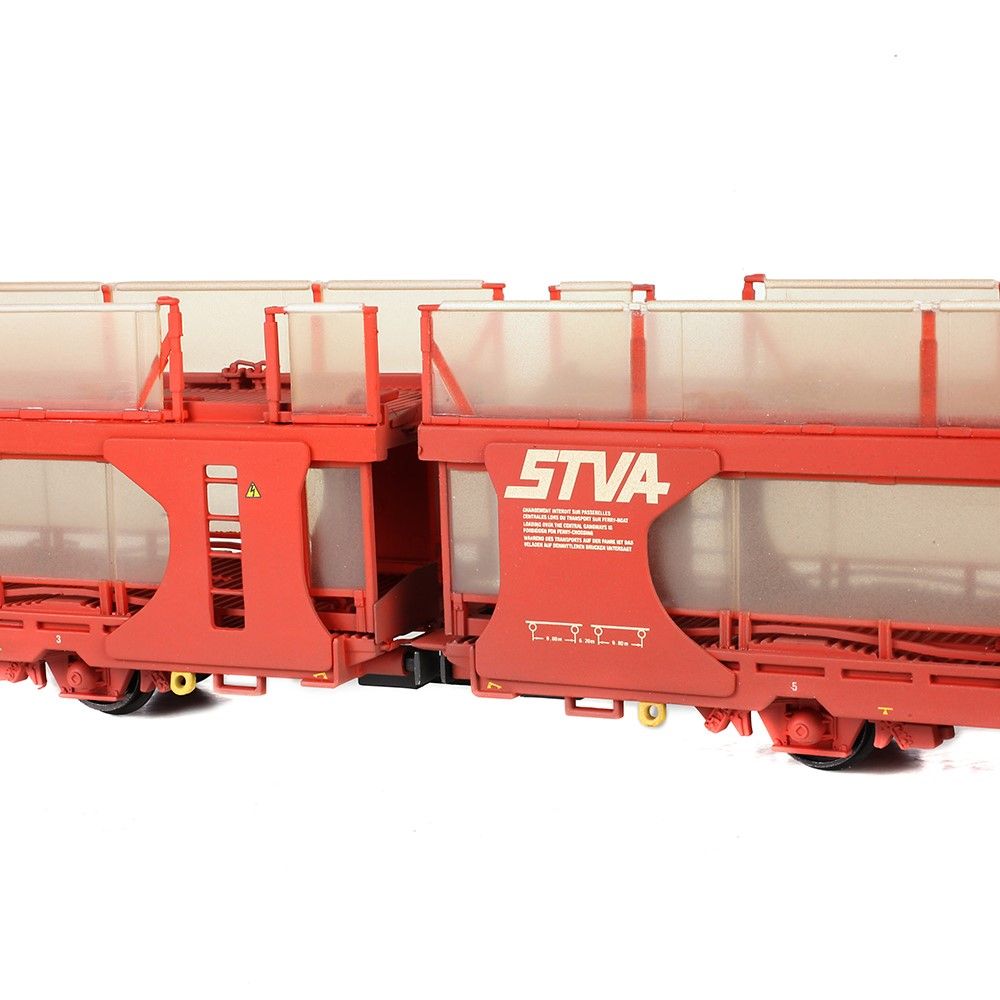 Announced in August 2022 to coincide with Bachmann Europe’s Autumn 2022 British Railway Announcements, we are delighted to present this Bachmann Collectors Club Exclusive Edition OO scale Twin Pack of IPA Double Deck Car Transporter Wagons in weathered STVA Red livery. Utilising the tooling previously used for the Bachmann Branchline main range IPA wagons, the IPAs now becomes a Club Exclusive Edition and this twin pack of wagons is offered alongside a second pack which carries STVA Grey livery.